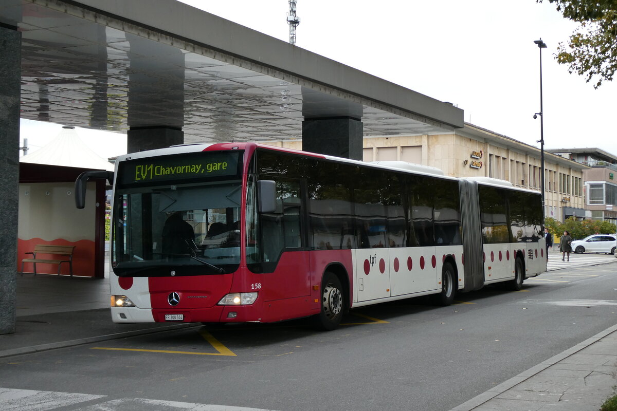 (281'263) - CarPostal Ouest - VD 496'879/PID 10'344 - Mercedes (ex Favre, Avenches; ex Rime, Charmey) am 11. Oktober 2025 beim Bahnhof Yverdon