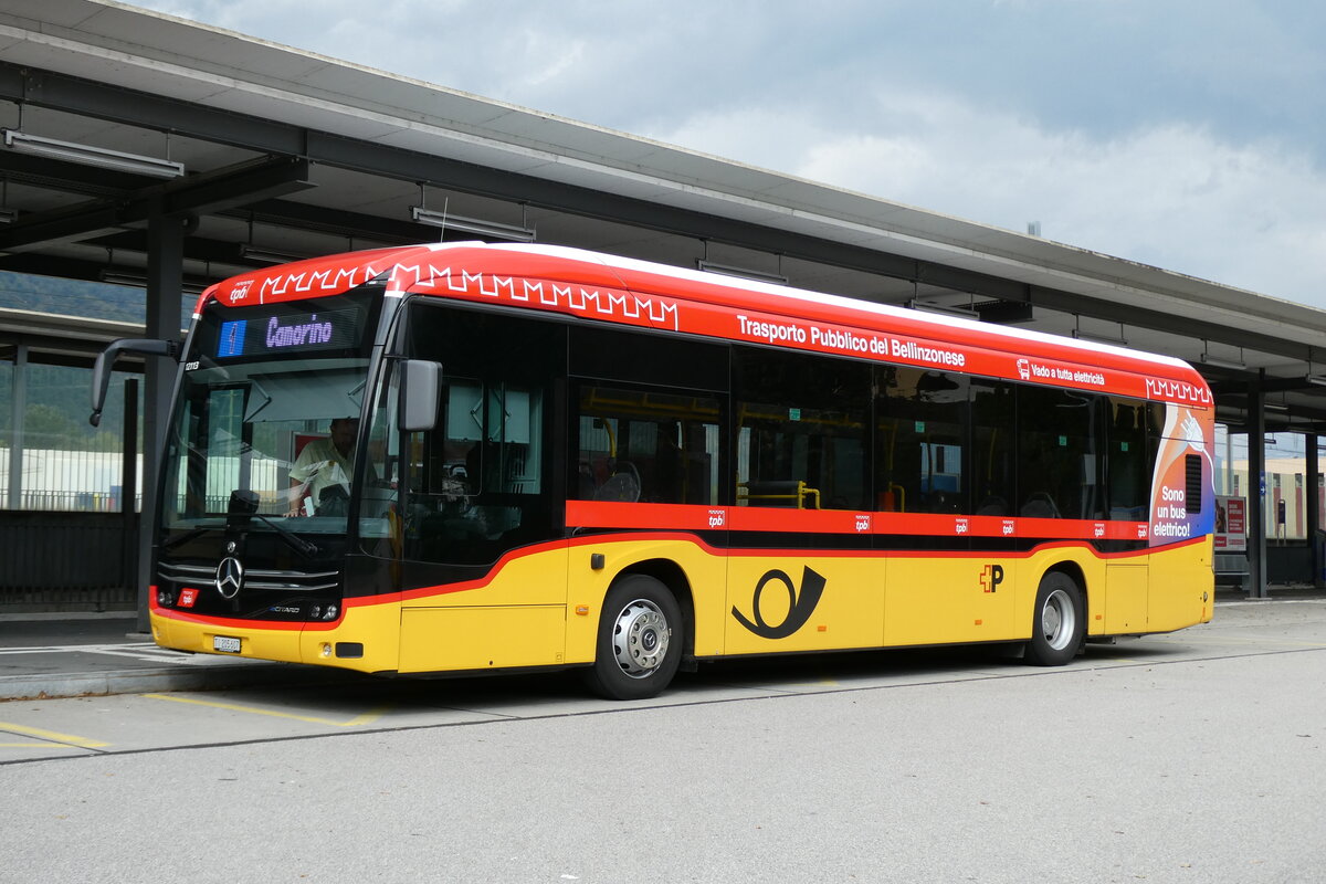 (280'314) - AutoPostale Ticino - TI 205'607/PID 12'113 - eMercedes am 13. September 2025 beim Bahnhof Castione-Arbedo