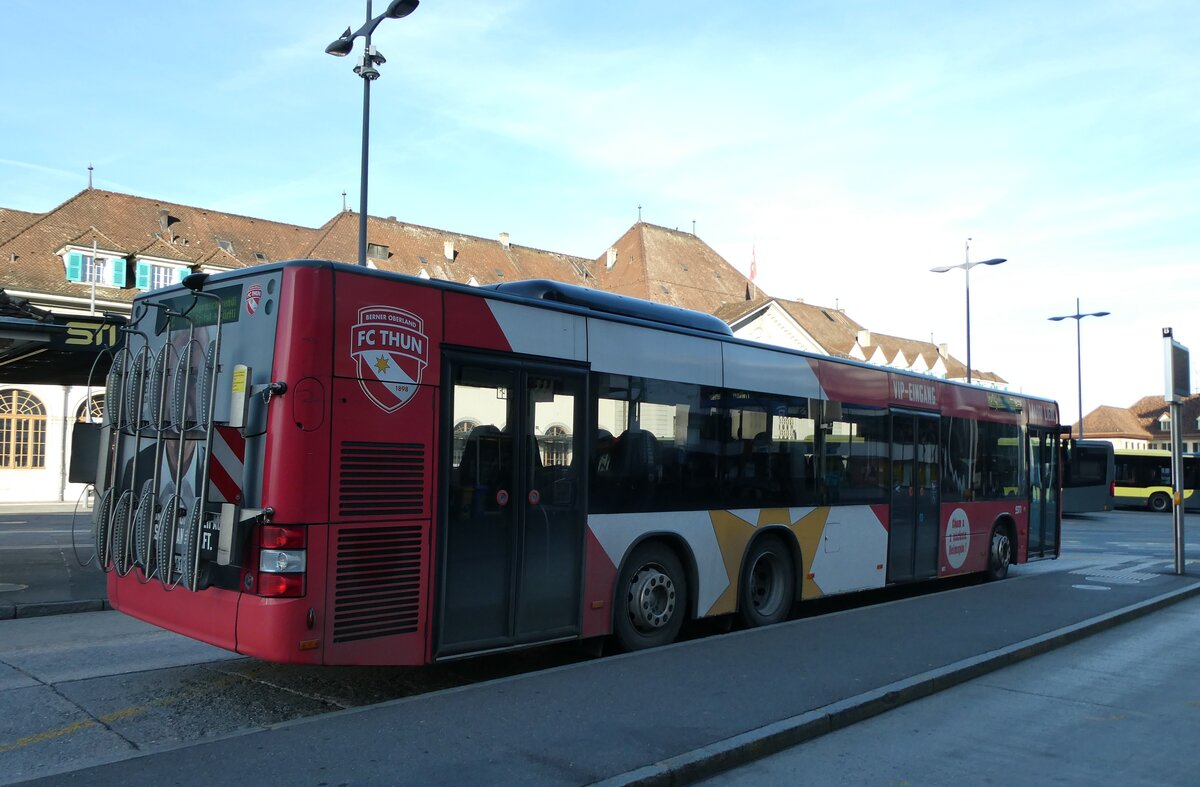 (223'825) - STI Thun - Nr. 129(BE 800'129 - MAN am 28. Februar 2021 beim Bahnhof Grindelwald (Einsatz Grindelwaldbus)