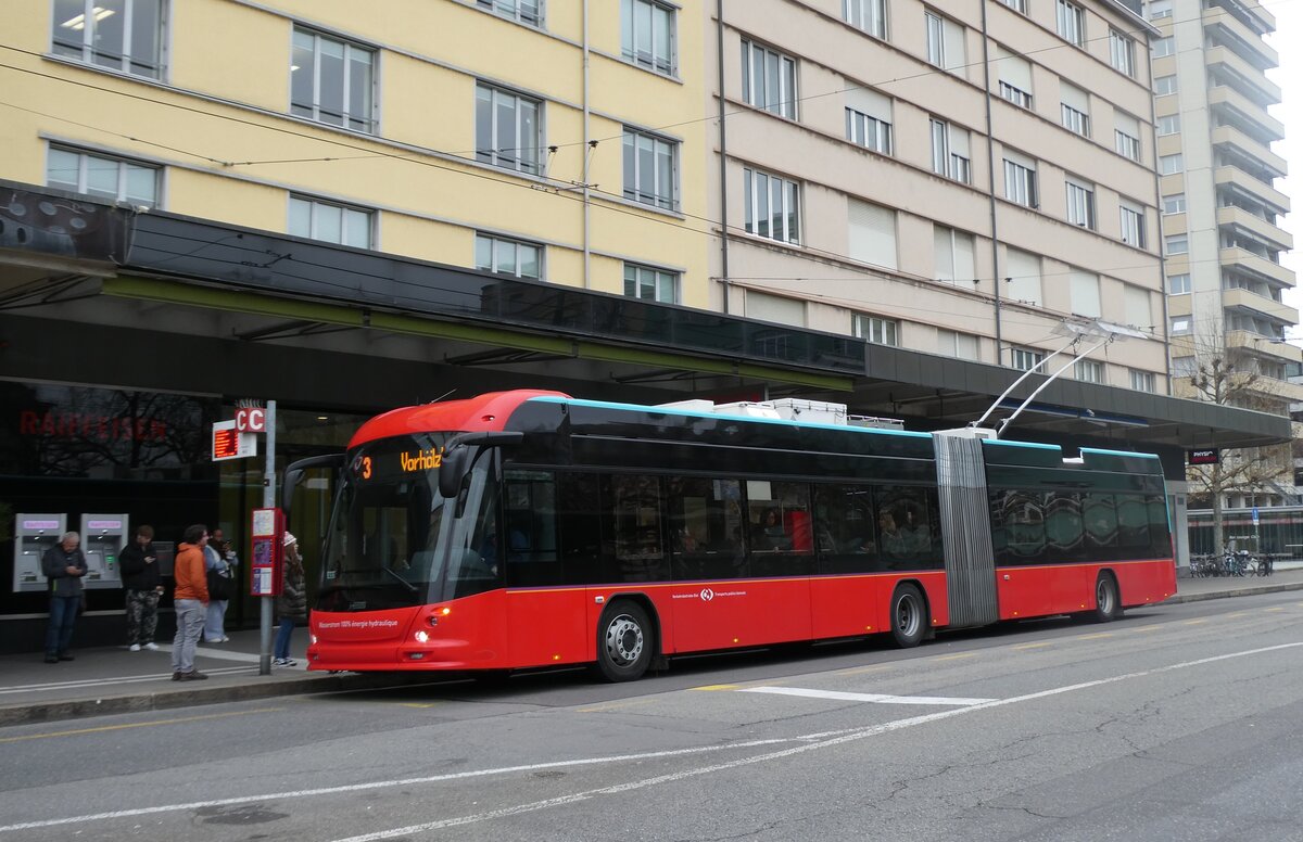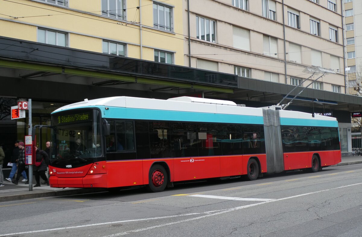 (282'739) - VB Biel - Nr. 98 - Hess/Hess Gelenktrolleybus am 4. Dezember 2025 beim Bahnhof Biel
