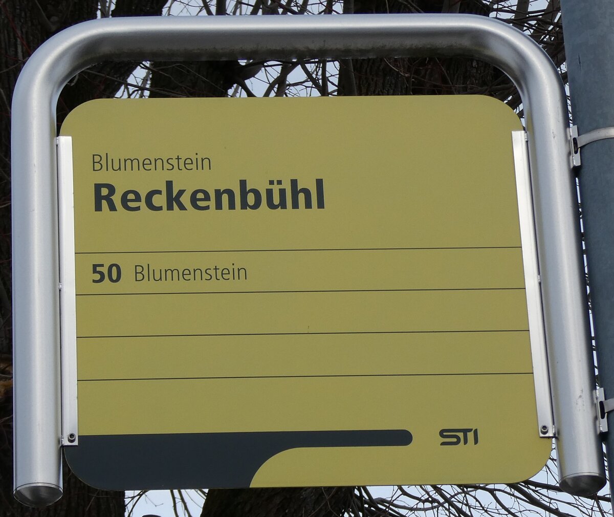 (153'704) - STI-Haltestellenschild - Teuffenthal, Halten - am 10. August 2014