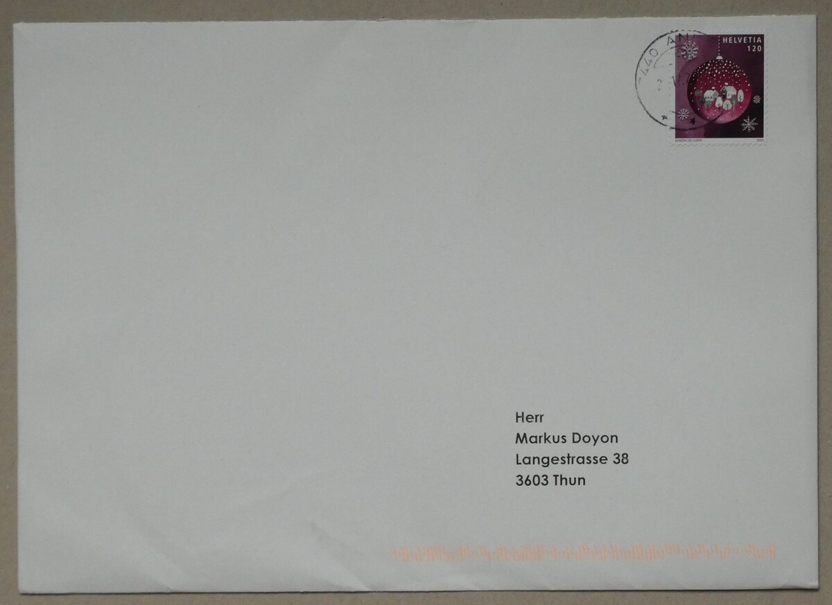 (283'529) - Posta Classica-Briefumschlag vom 21. Dezember 2025 am 27. Dezember 2025 in Thun (Rückseite)